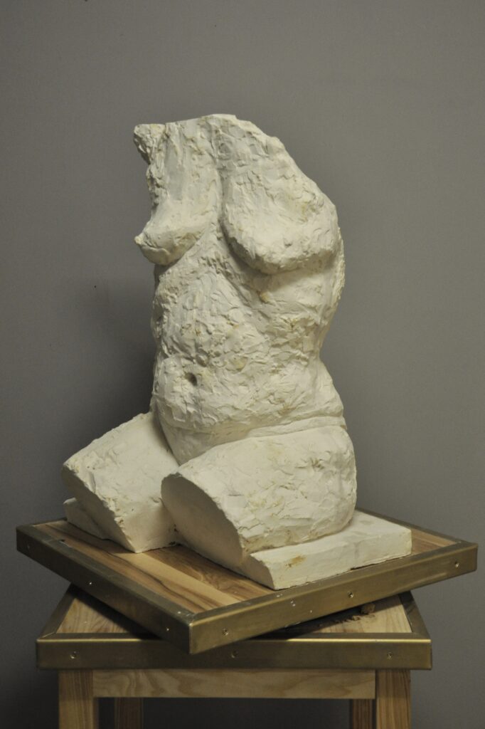 Spotkanie dla uczestników projektu EKSPERYMENTALNEJ PRACOWNI RZEŹBY skupia się na rzeźbiarskim opracowaniu ludzkiego torsu żeńskiego, realizowanego na podstawie pracy z modelem na żywo. Punktem wyjścia i główną inspiracją jest ludzkie ciało czyli jeden z najważniejszych i najbardziej uniwersalnych motywów w historii sztuki, obecny w rzeźbie od jej początków.